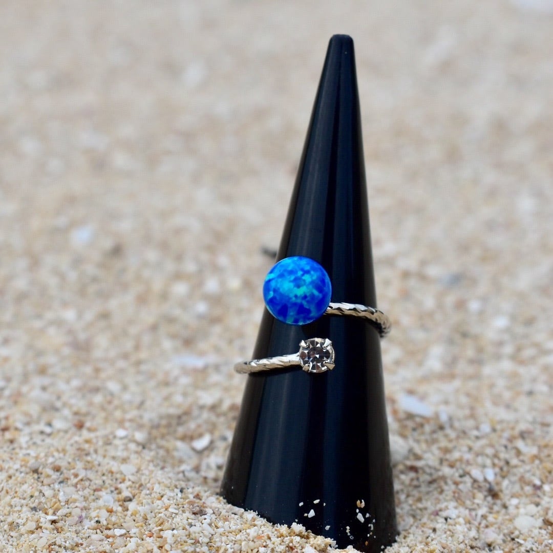 フォークリング シルバー 京都オパール 露草色 フリーサイズ(約11号)[MRFS-03]